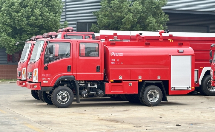 水罐容量:4-5吨车型储水量达4500L,满足初期火势压制需求。
