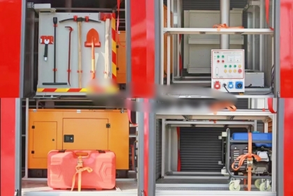 ¼ÝÊ»ÊÒ¶¥²¿Ç°¶ËΪ³¤Åž¯µÆ£¬³µÉíºóÅäÓÐ24V/60W»ð³¡ÕÕÃ÷µÆÒ»Ö»£¬³µÁ¾Á½²àÉÏ·½¸÷ÅäÓкìÀ¶ÏàÅäµÄ±¬ÉÁµÆ£¬Ï·½°²×°°²È«±êÖ¾µÆ£¬³ËÔ±ÊÒ¡¢Æ÷²ÄÏä¡¢ ±Ã·¿ÄÚ¾ù×°ÓÐÕÕÃ÷µÆ£¬¼Ó×°ÓÐ100W¾¯±¨Æ÷£¬»Ø×ª¾¯µÆ¿ª¹Ø¡¢Í¨Ñ¶É豸Ԥ±¸½Ó¿Ú¡£
